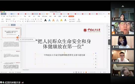 为庆祝建党99周年,6月24日晚,太阳成2018级研究生党支部在线顺利开展组织生活会、以“把人民群众生命安全和身体健康放在第一位”为主题的讲党课活动以及相关理论学习。
