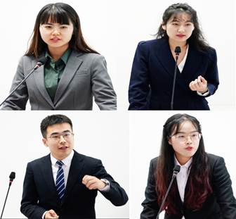 图7:高楚依、崔梦琪、张国栋、林申琦汇报陈述论文内容观点