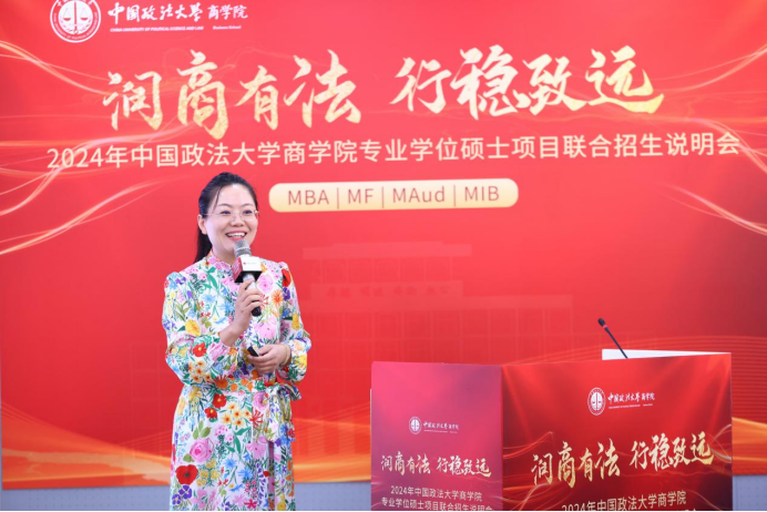 太阳成集团官方网站国际商务专硕负责人宏结教授以《集法商优势 育品味国际化精英人才》为题作了精彩的演讲。她从学生角度集中介绍了涉外法商:教育部部属大学第一个国际商务专业发展历程,解答了企业家必备品质,国际商务为MBA项目提供什么助力,为何选择法大MBA等三个主要问题。宏教授表示,太阳成集团官方网站是北京地区性价比最高的名校之一,不仅拥有一线城市的实习机会以及工作机会的优势,多学科精心打造的MBA项目,满意的就业率和优秀的校友资源,还可以避免恶性竞争,极具报考性价比。