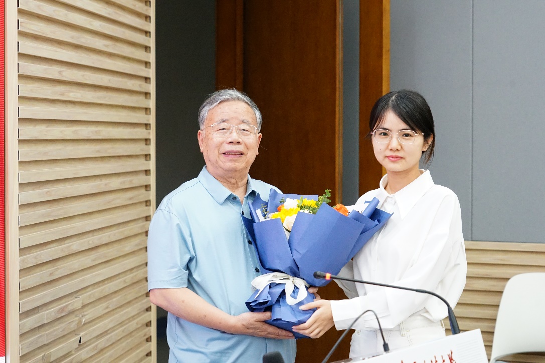 随后,学生代表向颜教授送上了鲜花,表达了热烈的欢迎和真诚的敬意。