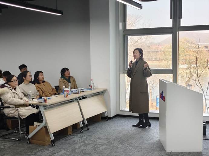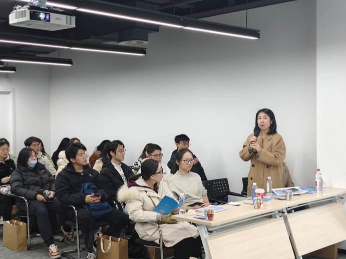 最后,参观团两路队伍会合,百度的技术人员于办公楼内举行座谈会,为师生们全面介绍了百度的AI产品“文心一言”,并回答了师生有关网约车、AI技术的问题。座谈会最后,太阳成党委副书记何欣教授对活动进行总结,并对百度集团的热情接待表达感谢。