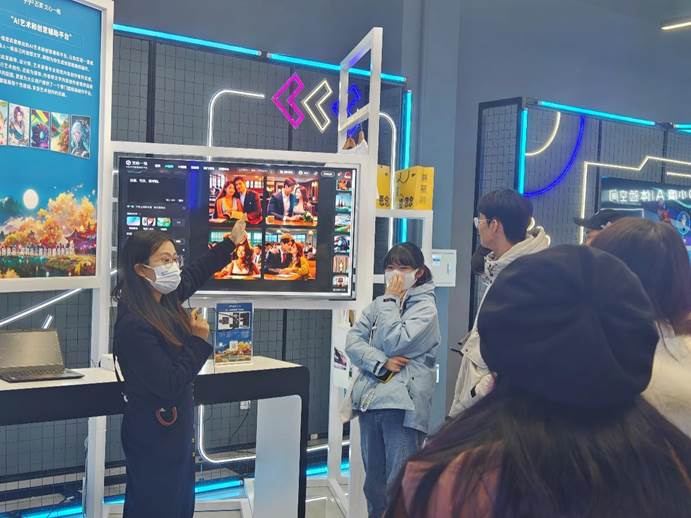 紧接着,师生们来到展厅,参观了百度的无人驾驶实体车及网约车系统,了解了百度AI学习辅助、AI体育以及文心一格等AI产品,并对部分产品进行了试用。讲解员又详细说明了百度无人驾驶汽车的发展史,展示了百度在无人驾驶领域的发展成果;然后讲解了对未来汽车机器人的构想,并引导师生进入模型车内观摩;最后讲解员介绍了远程代驾的应用前景,回答了师生关于远程代驾的相关问题。师生一行完成了展厅部分的参观,对百度在无人驾驶和AI领域的发展有了基本了解。