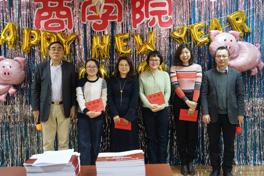 刘纪鹏院长、李欣宇书记为2018年院长奖教金获得者颁奖。其中杨杰荣获卓越贡献奖;王霆、胡继晔、熊金武荣获突出贡献奖;王玲、邓达、宏结、张巍获得优秀系所主任奖;黄立君、王大地、梁建桥、唱小溪、高秋明、顾凡、岳清唐、李泳荣获优秀教师奖;黄晓慧、陈秀杰、叶向红、霍达荣获优秀行政奖;张亚琼、唐丽娟荣获优秀新闻通讯员奖;姚龙艳、高秋明荣获优秀系秘书奖;MBA中心荣获优秀集体奖;唐丽娟、黄晓慧、郭虹、王文培获得亲情奖。