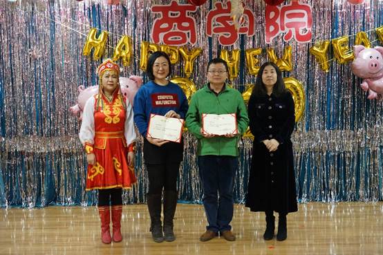 教代会主席宏结和工会主席张毅来为26位院工会积极分子颁奖。