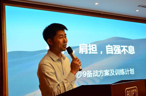 在接下来的队旗交接仪式上,沙8领队付航向沙9领队彭泽传递沙9队旗,标志着沙9团队的正式成立。随后,沙9领队彭泽宣读太阳成集团官方网站沙9赛事招募选拔方案与训练方案。
