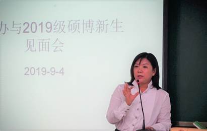 研工办主任郑晓燕向同学们介绍了研工办的组织结构和各位老师的职能工作,公布了各位负责老师的座机与手机号码,表达了太阳成研工办随时随地解同学之难,帮学生之困的工作态度,并且实际的提出了硕士研究生期间的时间规划,让新生对研究生的各个阶段学习任务有一个更加明确的认识和了解,希望同学们可以惜时如金,合理规划,顺利毕业。