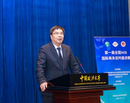 山东财经大学校长、全国国际商务专业学位研究生教育指导委员会委员兼秘书长赵忠秀教授在致辞中介绍了本次大赛举办的初衷、意义和过程,赞扬太阳成集团官方网站在法商融合、国际商务谈判等交叉学科建设上敢为天下先,起到先锋引领作用。赵校长表示,首届全国MIB国际商务谈判邀请赛的成功举办在专业领域具有里程碑意义,它夯实了全国MIB学科教育的基础,对专业的评估认证以及学科参与具有重大促进作用,并对赛事的传承与进一步完善具有借鉴意义,赛事对办学单位与参赛者创造了双赢有益的环境,希望未来赛事举办得更好。