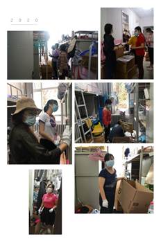 进入毕业生的宿舍后,志愿者教师们带领志愿者学生全程与每一位需整理打包行李的毕业生进行视频沟通,大到床单被褥,小到书本杂物,严谨仔细,不遗漏任何贵重物品及重要证件,从个人床铺到公共区域,每一样东西都仔细询问了毕业生的意见之后,才进行整理和装箱。宿舍内,老师同学们配合默契,分工合作,快速且细致地为毕业生收拾着物品;走廊上,联络员老师各处奔走,协调联系每一项相关事宜;寄存处,老师和学生认真地忙碌着,仔细登记核实每一位毕业生的寄存物品。每个人都是大汗淋漓,但在毕业生们连连道谢,说着“辛苦了!”的时候,还是会笑着回一句“没事儿”。每天下午,各个宿舍原本分散无章的行李物品,都变成了摆放有序的纸箱,邮寄物品、寄存物品、贵重物品、重要证件……被分门别类整齐的码放在了宿舍内外,等待与快递公司的接。