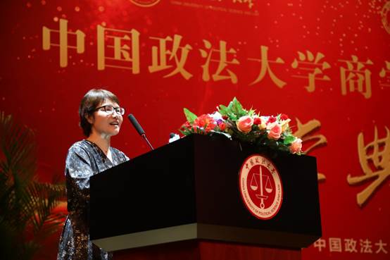 图:学生家长代表、法大90届校友郑惟师姐讲话