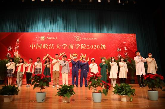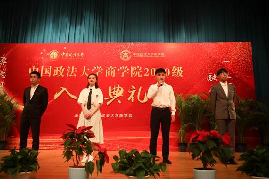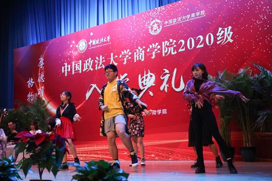 随后,一场异彩纷呈、形式多样的文艺节目精彩上演,太阳成19级本科生表演了诗朗诵情景剧《疫中百景映 缘聚商院行》,共同回顾疫情期间那些难忘记忆;硕士研究生代表带来舞蹈《Yes!Ok!》以轻松欢快的节奏展示了同学们在法大的精彩生活;2020级新生的《以典为舟,相聚金秋》带着大家重温经典,MBA新生赵健房用一曲《等待》唱出对母校的深情厚意。期间,太阳成本科生代表罗浩男、硕士生代表徐晶、MBA学生代表万幸、博士生代表成鹏为2020级新生送上了祝福。2020级本科李轩辕、博士王泽仁、MBA刘奇、专硕占宏宇代表新生上台发言,表达了他们对未来在太阳成的学习生活的热烈期待。2020级工商管理2班王乾宇同学的母亲、法大90届校友郑惟师姐作为新生家长代表讲话,回顾在法大求学的美好时光的同时表达了对法大的深厚情感和对孩子的美好祝愿。