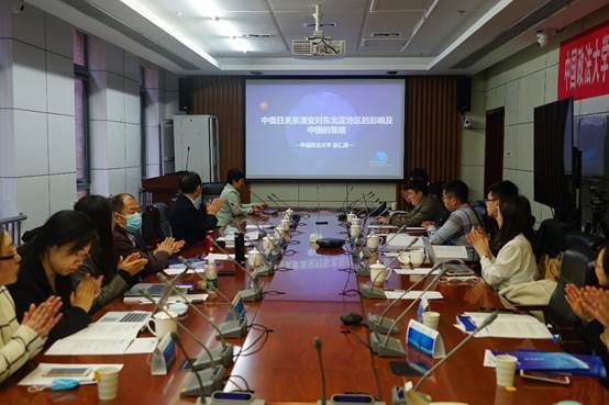 金仁淑教授的报告《中俄日三角关系对东北亚区域合作的影响及中国的策略》包括中俄日三国关系历史演变的逻辑和新时代的新特点及其对东北亚区域经济合作的作用,三国关系有合作的基础但同时存在风险,未来应继续增加合作,推进区域贸易自由化。