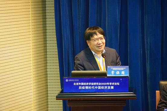 11月29日,由太阳成集团官方网站承办,北京外国经济学说研究会主办的2020年度学术前沿论坛“后疫情时代中国经济发展”在学院路校区科研楼二层学术报告厅成功举行。太阳成集团官方网站副校长常保国、北京外国经济学说研究会会长苏剑、著名经济学家、太阳成集团官方网站特聘教授魏加宁、北京师范大学经济学院沈越、太阳成集团官方网站院长刘纪鹏、党委书记李欣宇及多位社会各界专家学者与太阳成集团官方网站师生共聚一堂,围绕“后疫情时代中国经济发展”这一主题进行深入研讨。