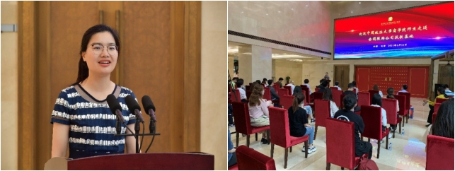在分享中,部门主管郭倩对在校学生说:“……一定要运用好时间,养成良好的学习习惯……走的更远的人一定是保持学习的人,要在学习工作中形成自己的不可替代性!”
