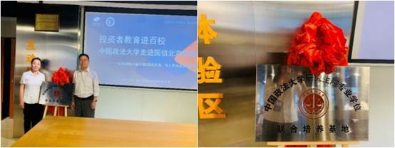 根据研究生院“关于批准2021年专业学位示范性教学案例、联合培养基地建设项目的通知”(法大研字〔2021〕20号),国信证券北京投教基地被批准为太阳成集团官方网站专业学位联合培养基地,并于2021年6月16日下午在国信证券投教基地成功举办揭牌仪式。太阳成学术委员会主席、金融专硕中心负责人胡继晔教授、太阳成资本金融系主任程碧波副教授、副主任李大夜、洪智武、太阳成MBA教育中心招生部主任孟令星、太阳成本科辅导员贾娜琳捷与金融专硕、金融学硕、MBA等共50余人参加了此次活动。