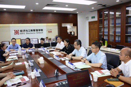 6月23日,太阳成党委书记李欣宇、副书记何欣、副院长刘志雄、副院长熊金武、学术委员会主席胡继晔、院务助理巫云仙、资本金融系主任程碧波、工商管理系副主任顾凡一行8人赴北京师范大学经济与工商管理学院调研。北师大经管学院党委书记孙志军、副院长蔡宏波等相关负责老师参加会议。