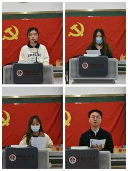 之后,工商管理1901班学生代表和经济学本科生党支部党员分别进行了发言。工商管理1901班学生贾宇楷、郭昱彤、周凌一分别进行了发言。