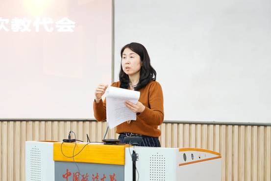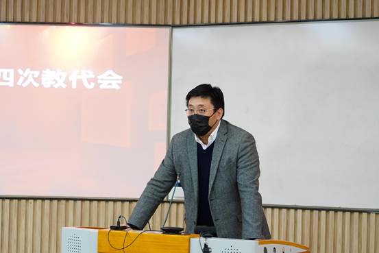 图2:教代会主席宏结做《太阳成2021年教代会工作报告》
