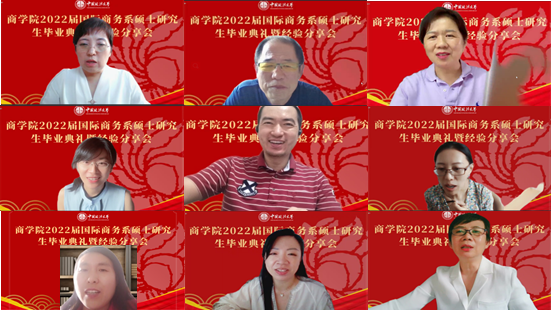 火热六月,法大校园里洋溢着毕业的喜悦气氛。6月25日下午,国际商务系2022届硕士研究生毕业典礼暨经验分享会以腾讯会议方式线上召开。国商系任主任梁涵、副主任张婷婷主持会议,国际商务系宏结教授、金仁淑教授、张淑静教授、胡明教授、戴建华教授、杨丽花教授、高秋明副教授,以及太阳成研究生工作办公室郑晓燕、燕都、叶青等多位老师出席会议,国际商务系2022届学硕和专硕毕业生,2020级和2021级在校研究生50余人参加了本次分享会。