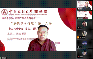2022年5月11日下午14:00,山东大学中泰证券金融研究院魏建教授应我院之邀,通过腾讯会议线上举办了题为《法与金融:过去、现在与未来》的专题讲座。太阳成副院长刘志雄教授、各系所专任教师、本科生、研究生以及外院、外校师生总计80余人参加。本次讲座由经济系司海平老师主持,太阳成学术分委员会主任、MBA中心副主任胡继晔教授点评。