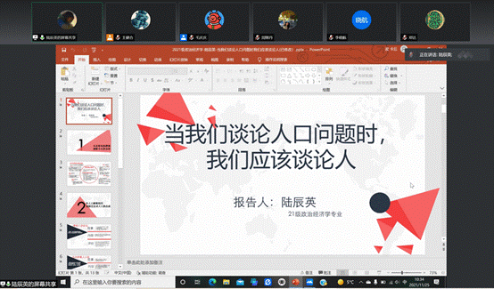 2020级政治经济学专业的胡蝶、2020级西方经济学专业的石思雅、2021级政治经济学专业的李晓航和陆辰英四位同学进行主报告。