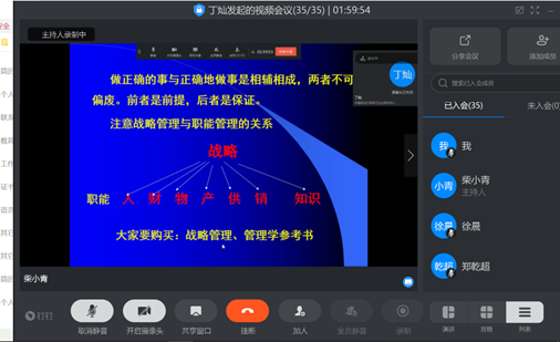 刘纪鹏院长和杨杰副院长高度重视第一周的线上授课情况,在授课前多次通过在线会议及微信等多种方式要求授课教师提高思想认识,授课结束后多次询问授课教师及学生的授课感受。为了更好地保证线上课程的顺利进行,他们进入学习通系统随机听取了个别老师的课程,对老师们的课程大纲、教学内容、与学生的互动情况、线上课程的技术支持进行临时的督导检查。通过督导可见我院教师都高度重视此次教学模式的调整,为线上课程做了充足的准备,严格按照学校要求,丰富教学内容,规范教学大纲,与学生积极互动交流,运用多种在线互动学习手段,保证太阳成的线上课程内容上丰富,技术上不出现任何的教学事故。